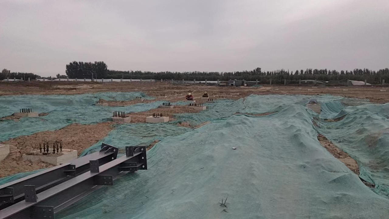 2023年11月3日饒陽宇潤光電5-7#車間鋼結(jié)構(gòu)工程鋼柱進(jìn)場施工。