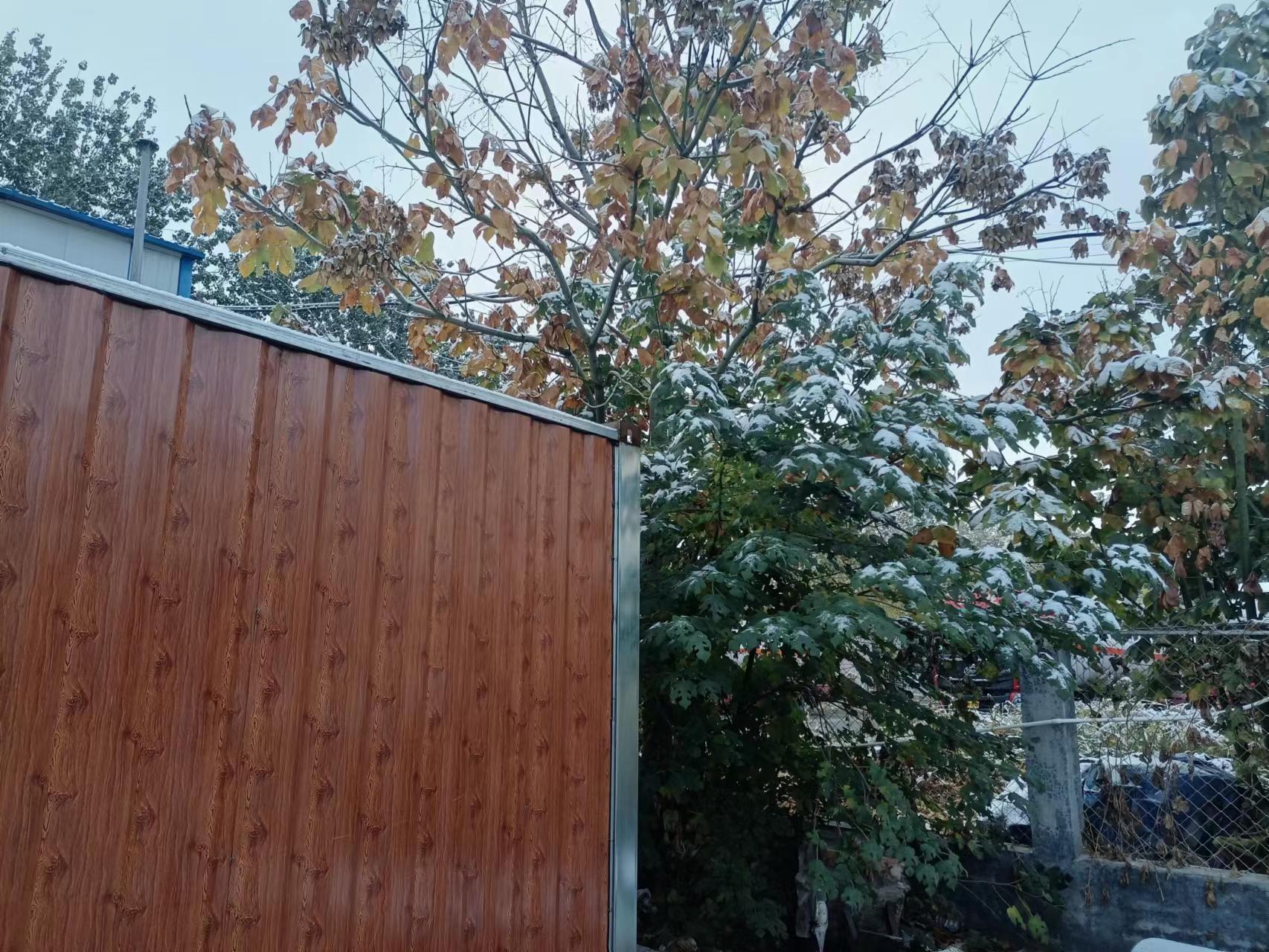 我們的工地也下過雪了。綠色防護網(wǎng)上有少量積雪。工人們將開啟新的**的勞作。